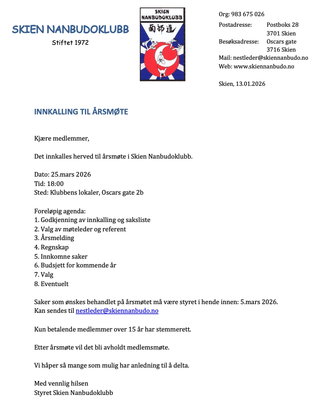 Vi har nybegynnerpartier for barn og ungdom/voksne, og for viderekomne tilbyr vi nivågraderte partier etter beltgrad og alder. Våre instruktører er engasjerte, erfarne og oppdaterte nanbudoutøvere, alle har gyldig politiattest.